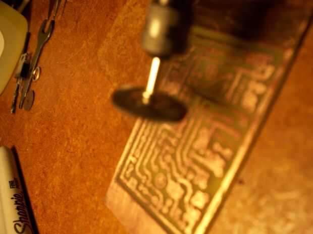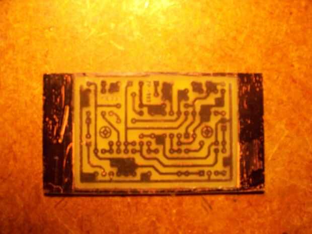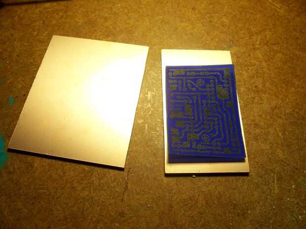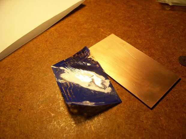 2. utilizar un método de conseguir el diseño a la tarjeta. (He probado esta prensa azul N' pelar. Realmente no funciona en absoluto, supongo que utilizar demasiado calor con la plancha. Acabé usando el método de transferencia de toner y lleno de manchas en blanco con un rotulador)