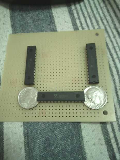 Empecé virando las virutas de TLC en, utiliza unas monedas para aumentar la parte de la placa de circuito y soldar los cables en las esquinas de las virutas. Mi esperanza es que esto ayuda a que el chip de disipar el calor, sin adición de disipadores de calor.