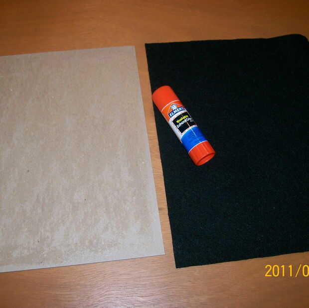 Una sola pieza de fieltro sobre el cartón con un palillo del pegamento del pegamento.