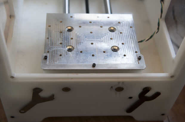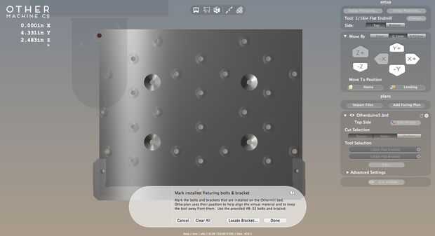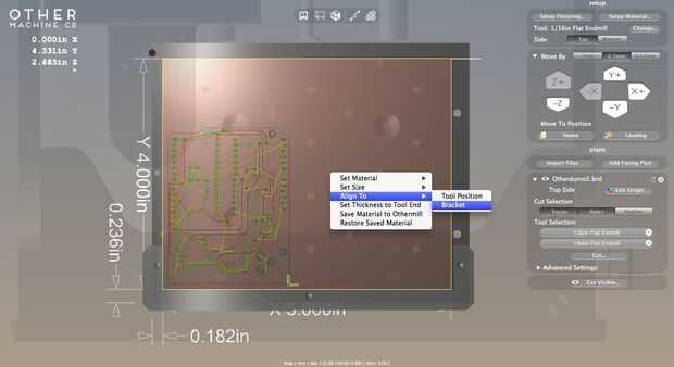 Para las huellas y los agujeros en ambos lados de la Junta a la línea de arriba, necesitamos utilizar el soporte de alineación. Ha incluido con el Othermill, como son 3 tornillos y una llave Allen.