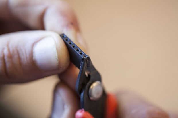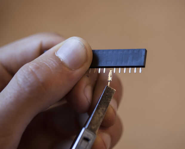 - Alicate para sacar el pin 7 y el pin 14 de uno de los encabezados, así como el pin 9 y 18 del otro.