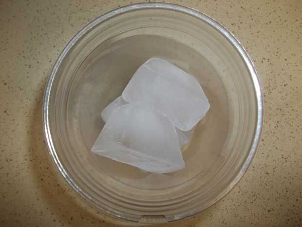 Llene una taza de 16 onzas con hielo hecho de agua filtrada.