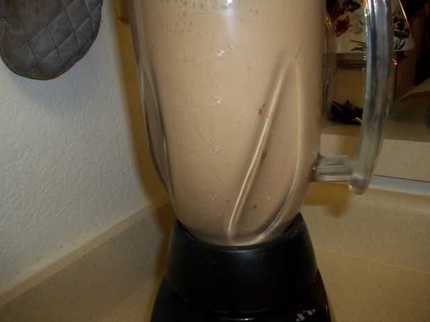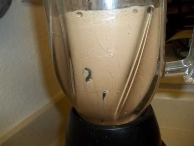 Prepare café fuerte usando dos veces la cantidad de terreno requerido por la cafetera. Enfríe el café en el refrigerador hasta su frío. Combinar el café frío, leche, azúcar, jarabe de chocolate, jarabe de avellana, vainilla y extracto de almendras en la licuadora y batir durante 1 minuto a baja para disolver el azúcar. Añadir el hielo y bata en alto hasta que se pique el hielo y bebida suave. Vierta en un vaso de 16 onzas y servir con una pajita.