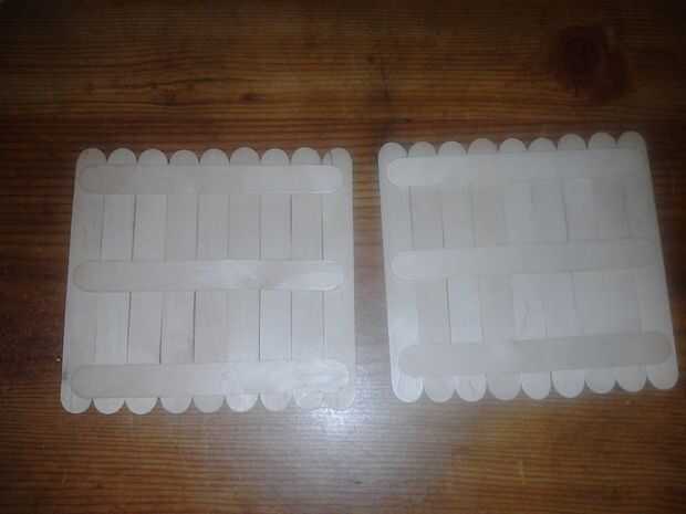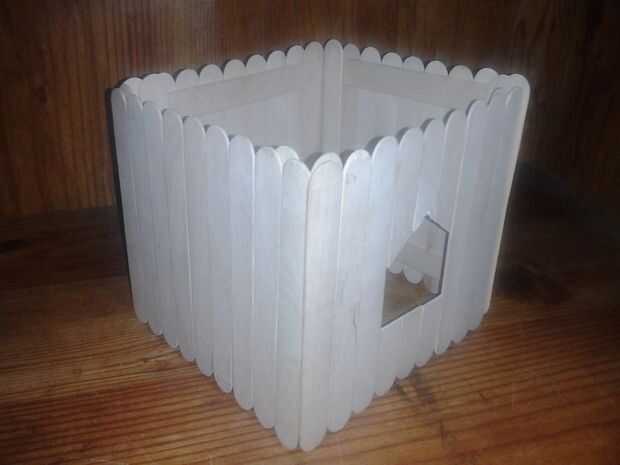 Después de hacer los cortes a los tres palitos y el pegamento está seco se pueden unir todas las paredes, el piso se puede también poner bajo las paredes después de que se todos se pegan y se han secado. Cuando haya terminado de pegar las paredes juntas a que puede empezar trabajar en las piezas para hacer el techo del club de los que haces es llegar otro nueve palitos y lugar ellos verticalmente al lado uno del otro, pero esta vez pones tres palos horizontales en lugar de tres en los nueve palos de dos de ellos estarán en lados opuestos y el último será en el centro.