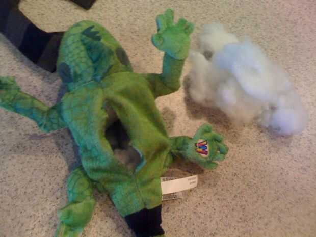 Jefe de figura la mejor ubicación para la apertura del Club. En mi paciente me sentí mejor al entrar en el vientre. Hacer una incisión un poco más grande que la cabeza del club de golf en que va a utilizar. Quitar el relleno para hacer el animal pequeño. Se se debe doblar el calcetín sobre el animal y debe ser bastante pequeño caber.