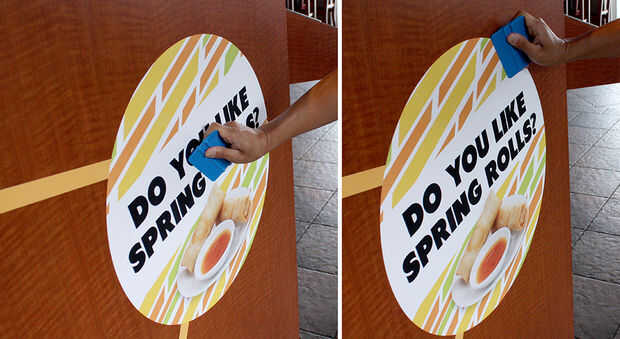 Una vez que todos los círculos y tiras se aplican en la carpintería en la secuencia correcta, utilice la boquilla pequeña de 3M blanco (proporcionada) para suavizar a los gráficos. Asegúrese de que usted mueva la escobilla de goma presionando hacia abajo en un ángulo desde el centro del círculo hacia fuera en el borde del círculo. Esto le ayudará a salir burbujas de aire.