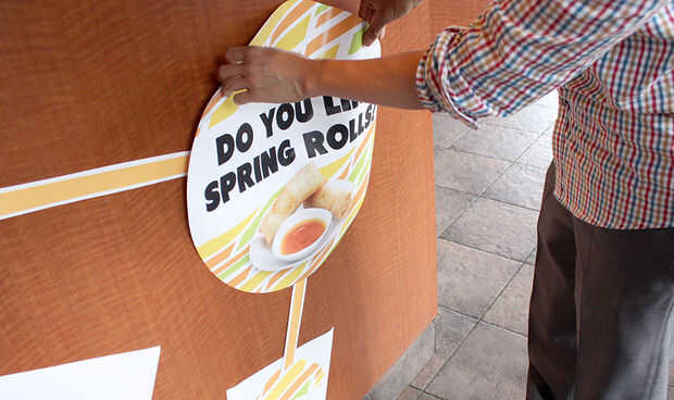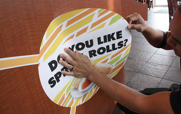 Aplique ligeramente el gráfico suavemente contra la carpintería a partir de un borde para evitar doblar o burbujeo.