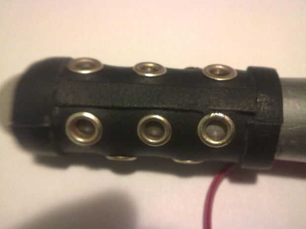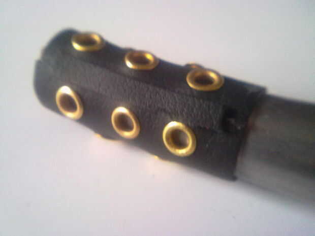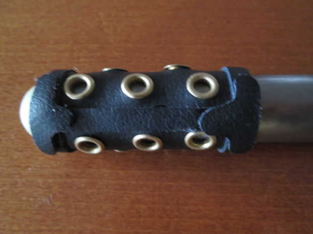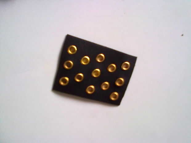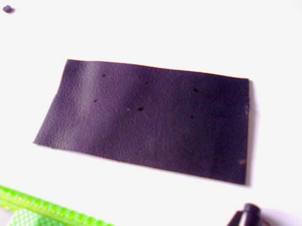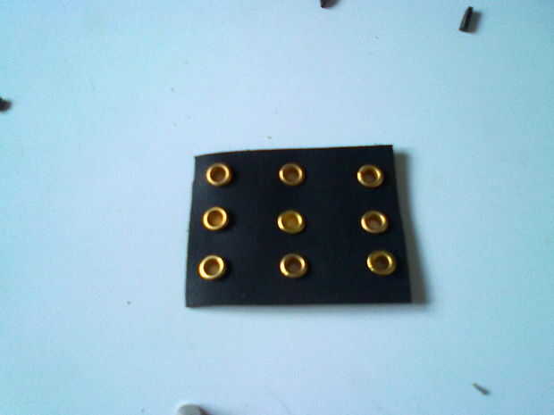 Por lo tanto, he cortado un rentangle sobre 6 x 7-8 cm (de diámetro), los orificios perforados en él y agregó ojales (latón revestido, por lo que después de algún tiempo será color plata)