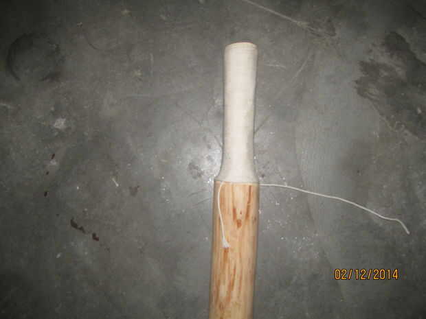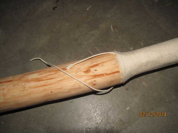 Para hacer más cómoda y darle una mejor adherencia, cadena de abrigo o paracord bien redonda la manija para por lo menos una capa. Puede entonces atar o utilizar pegamento o conducto de cinta adhesiva para fijarla. La segunda a la última foto es del club terminado y uno más pequeño que hice antes, donde usé cinta aislante y araldite para mantener la cadena en su lugar.