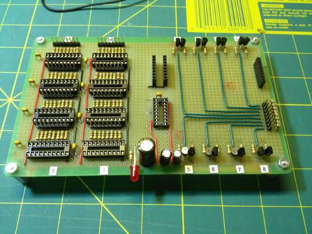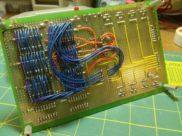 Algunos de los soldadores en el perfboard demostraron para ser absolutamente desafiador. Me pareció esencial para marcar y número todo lo posible para evitar la confusión. Es fácil de incorporar conexiones cuando la Junta los bancos. Encadenamiento de las fichas de registro que resultó para ser la operación de soldadura más pesadilla. Aquí es donde tendría un kit de un PCB muy agradable. En algunas articulaciones, había 3 o más puntos para conectarse en un solo cojín de la soldadura y manteniendo la soldadura de puente a una plataforma adyacente fue complicado (tienen un lechón soldadura útil). Terminé buscando en la web y encontrar algunos 26 conexión sólido AWG de, que hace el proceso mucho más fácil como podría caber al menos 3 cables en los agujeros de perfboard. Otra vez, prueba, marca, prueba. A pesar de mi progreso lento, minucioso, todavía encontré unas articulaciones que debería/no deberían tener continuidad durante la Asamblea de la Junta.