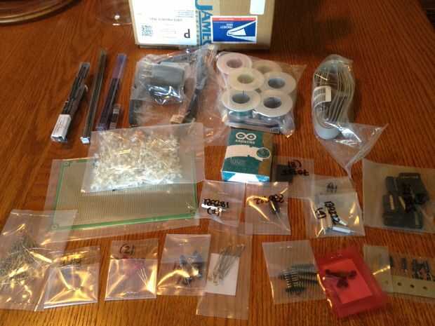 Nota: Contar sus piezas. Mi bolsa de LEDs era cerca de 10 cortos en el número de piezas necesario para completar el kit. Jameco era muy sensible y me enviaron piezas de recambio inmediato.
