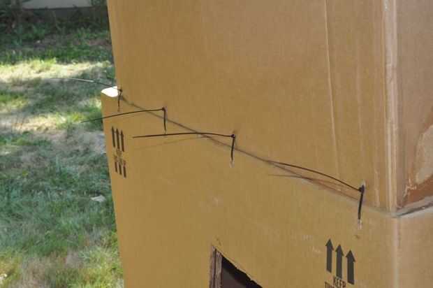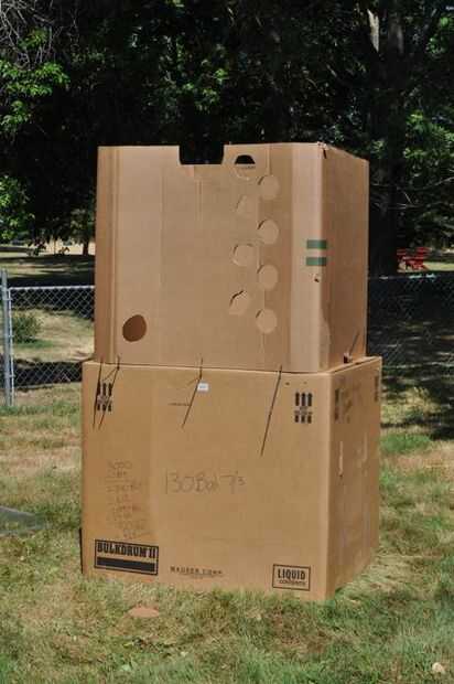 Poof! Dos pisos de cajas de cartón. No muy impresionante todavía. Tiempo para puertas y ventanas!