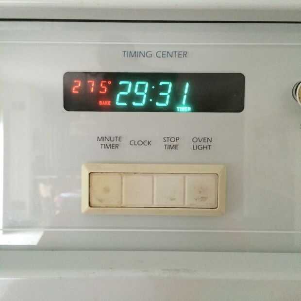 Saque para hornear del horno utilizando guante. Déjelo enfriar sobre una superficie segura de calor (yo usé mi cocina).
