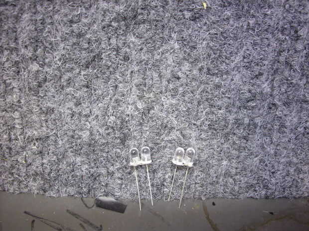 Primero usted necesita sólo dos LEDs. Colocarlos en dos agujeros en cualquier parte pero el tiene que estar justo al lado de uno a