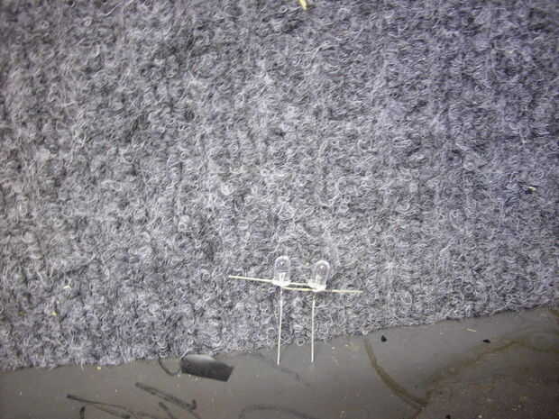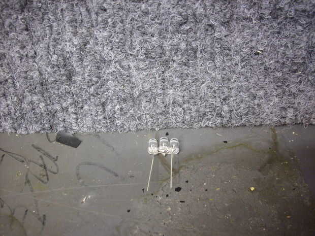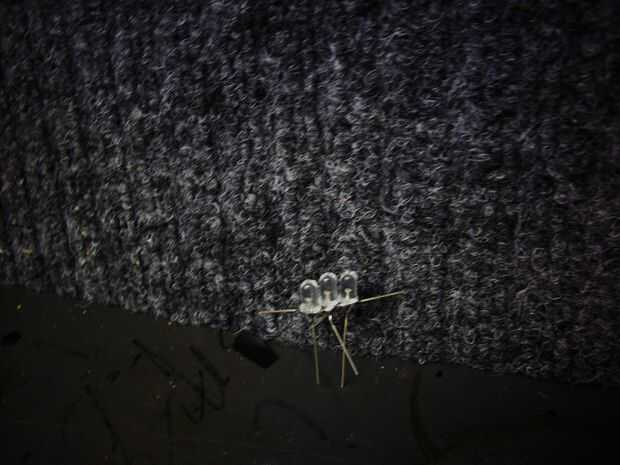 Primero tome los tres LEDs restantes y colocar dos de ellas a ambos lados de la plantilla. debe haber un espacio entre ellos.
