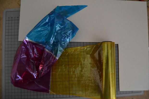 Si no puede conseguir sus manos en un material como este look para algún otro transparente, coloreado de láminas de plástico que es termoadhesivo para papel.