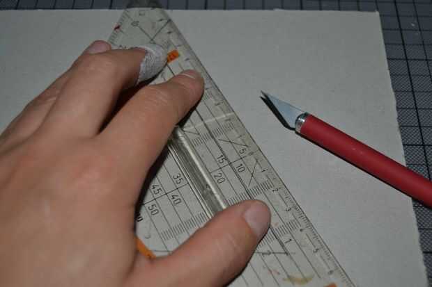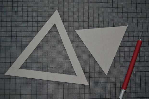 con la ayuda de una regla y un cuchillo del exacto, cortar el triángulo grande y el pequeño dentro de triángulo, deseche el triángulo interior, usted no necesita.