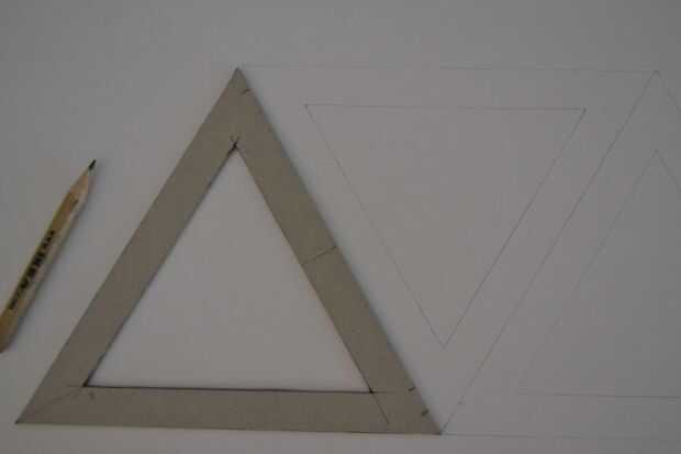 después de dibujar todos los triángulos, se debe agregar aletas de cola en un lado de cada egde donde luego tienes que unir las diferentes partes. Vea la tercera foto.