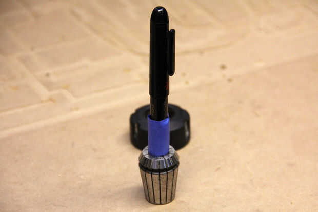 Usé cinta para aumentar el diámetro y que coincida con la pinza como lo hice con los dibujos de pluma.