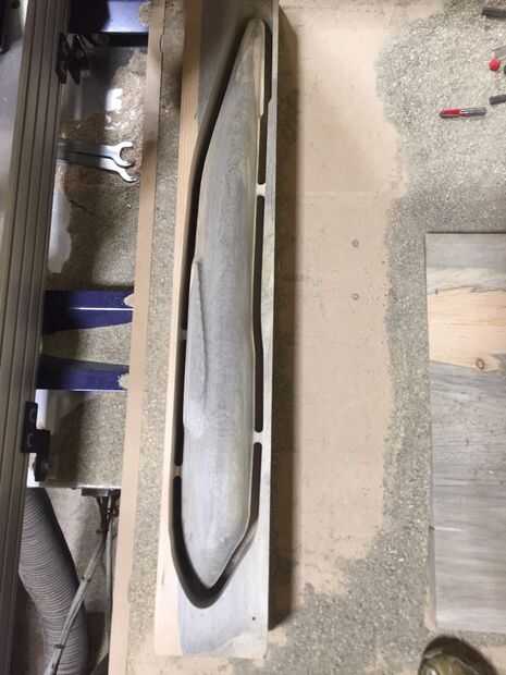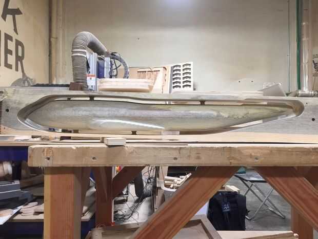 Después de ejecuta el desbaste y acabado pasadas usando el archivo de 02_Fuselage_Right.vc , fichas de programa y su fresa largo de 0.5" espiral hacia abajo para cortar la última pasada de perfil profundo de 2".