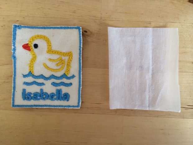 2. la segunda plancha estará bajo un paño húmedo, el parche y el material final que está aplicando en la cara para arriba. El pegamento conectará el parche con el material (en este caso el mono) y enlace de los dos. Déjelo enfriar y eso es todo!