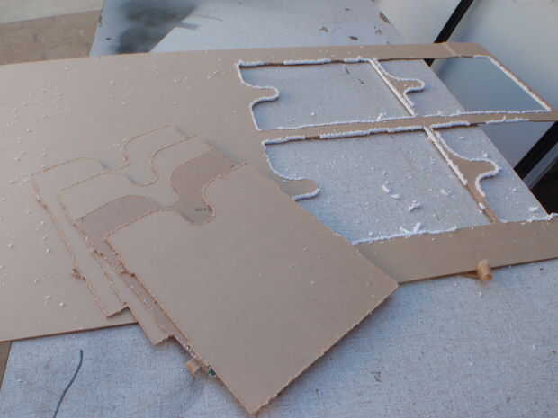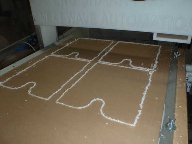 Una vez que la máquina ha cortado el primer lote de pieza después deslice el acrílico código de carga G siguiente adelante y cortar el segundo lote de piezas. Mi router sólo corta 600 X 600 mm por lo que es necesario hacer dos carreras para obtener una parrilla.