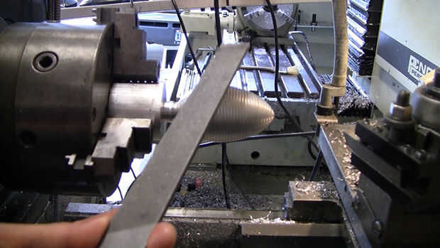Observe que el resultado no es una pieza de acabado de espejo. ¿Podría hacerse con un molino del CNC? En sí de la teoría, pero hubiera tenido que emplear fresas bola progresivamente menores y cortes de paso progresivamente más pequeños e incluso entonces habría habido algunas marcas de corte.