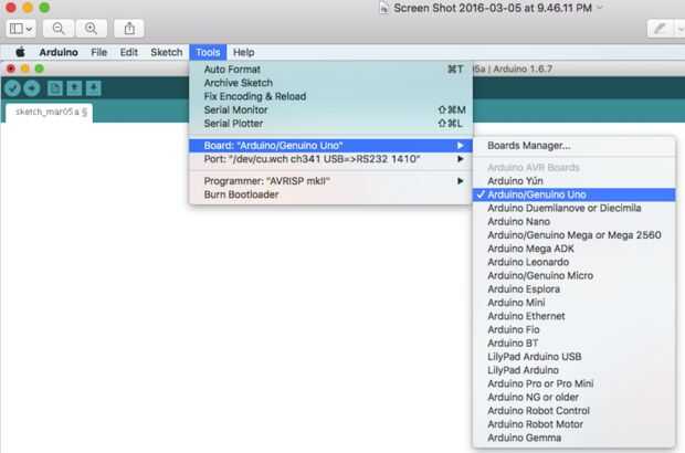Conectar tu Arduino Uno al ordenador. Asegúrese de que su Junta se establece en el Arduino Uno en la herramienta -> menú de tablero y el puerto serie seleccionado correctamente en herramienta -> Serial Port. Haga clic en el Upload, y Grbl debe compilar y flash a tu Arduino!