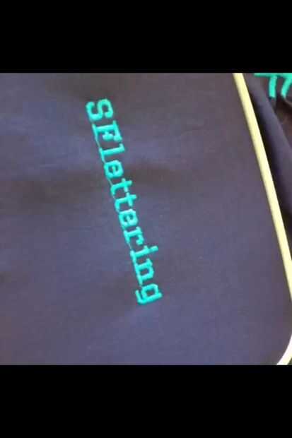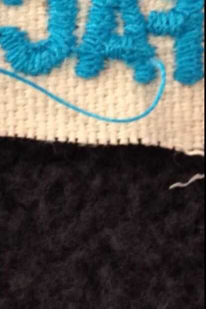 Sugerencia: Asegúrese que los bordes de su respaldo se extiende más allá de los bordes del aro por al menos 3/4" de pulgada en ambos lados para tener en cuenta la tela de la máquina de bordar las letras.