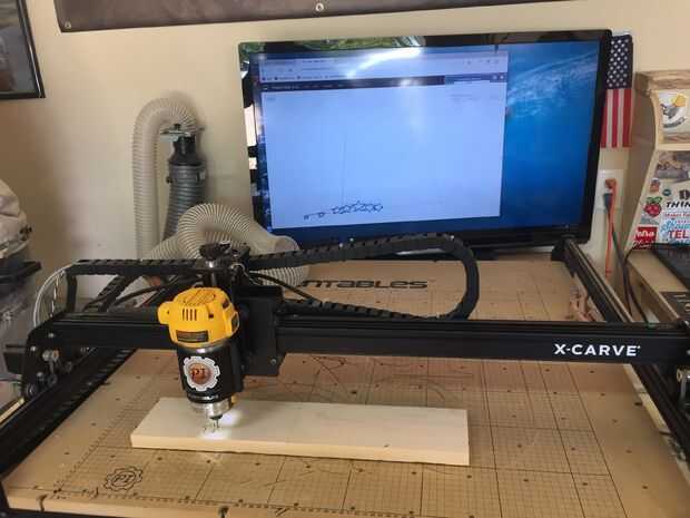 Exporta la incrustación masculina G-code de Aspire en base usando la nueva aplicación de G-code y tallado hacia fuera usando un molino de extremo de 0,058 pulgadas poco. Corté las piezas 0,3 pulgadas más el bolsillo que tenía la intención de cortar de modo que el pude arena les piso más adelante.