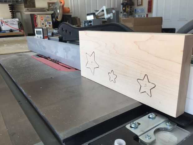 No corté todo el camino a través del material así que tuve que usar mi sierra de mesa para cortar hasta la capa inferior de las estrellas. Después de un lijado ligero, las estrellas separan el arce.
