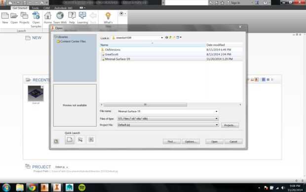 2. Desplácese hasta la mínima-superficie-1ft.stl y abrirlo.