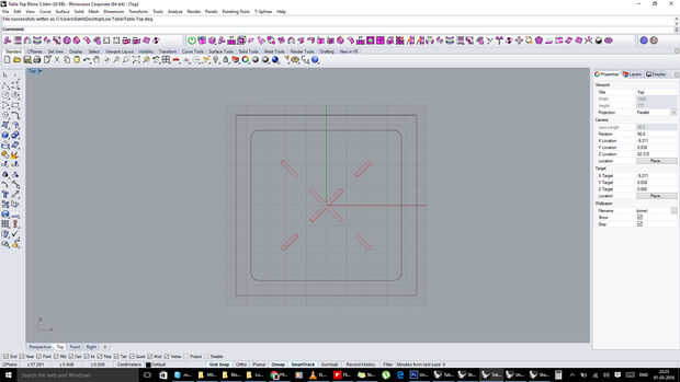 Yo realmente había molido 3 mesa fuera de la hoja de caucho de una de 8'x 4'. El archivo de Rhino y Autocad que adjunto es de una sola tabla. Puede descargar el archivo de Rhino y a jugar y editar el diseño.