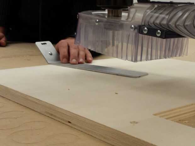 Ahora usted está listo para cortar las piezas para tu mesa. Coloque su hoja de 8' x 4' de MDF de 18mm en la mesa de trabajo de la Shopbot. Utilice abrazaderas de tornillos para obtener la hoja hasta la mesa.