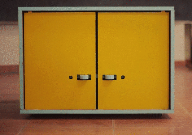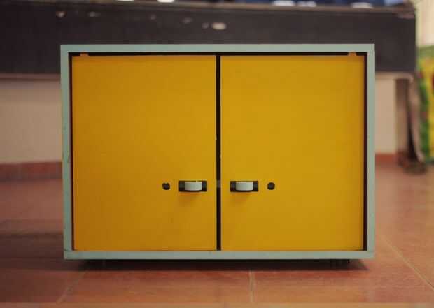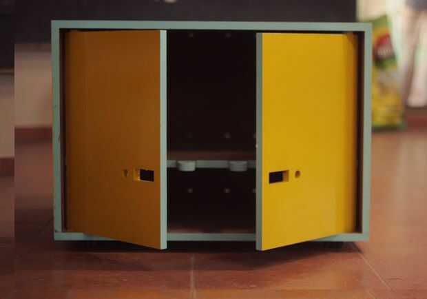 También queríamos mostrar a niños el tipo de cosas que se puede crear con un molino CNC (Shopbot PRS Alpha) y los diferentes tipos de carpinterías y conjuntos que se pueden alcanzar. Esta unidad de almacenamiento tiene dos compartimientos que pueden bloquearse con dos puertas. El estante separador alberga el cierre de extensiones. Estas unidades de almacenamiento son muy fáciles de montar y se pueden poner juntos en cuestión de minutos. Para hacerlos realmente robusto, después Júntalas ponemos tornillos en los lados. Castor se ponen en la parte inferior para moverse por el espacio. El único hardware utilizado en estas unidades son los tornillos y las ruedas. No hay ninguna bisagra en las puertas. Las puertas abren dos ranuras circulares en el panel superior e inferior de la unidad. Esta unidad puede alojar componentes electrónicos costosos, trabajo en curso y otros consumibles.