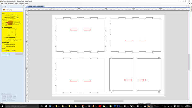 Cree un nuevo archivo. Ahora en configuración de trabajo: se creará un archivo con el tamaño de la hoja 1: 8' x 4' x t (t = espesor del material verdadero). En mi caso era 18 mm. cero en la parte superior.
