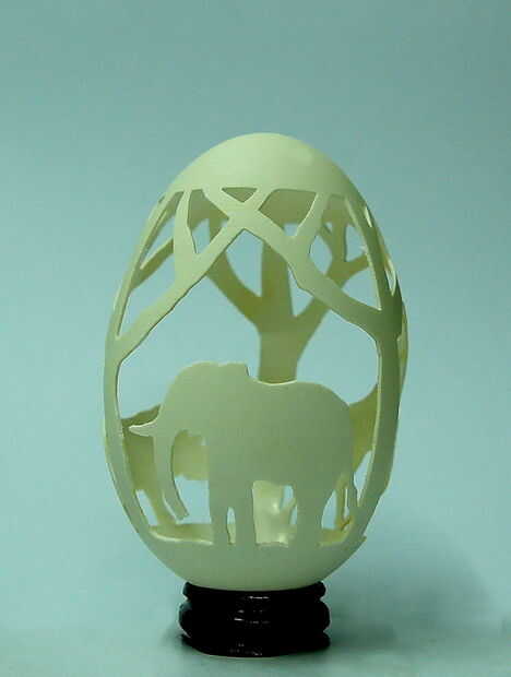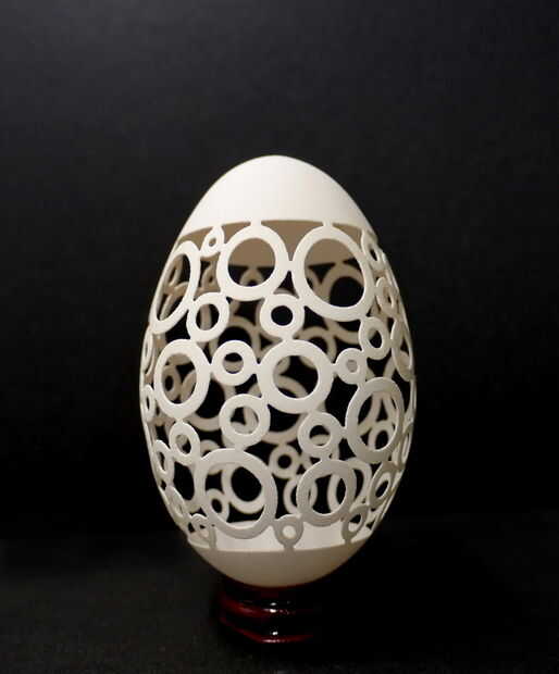 he creado este proyecto con el sorprendente huevos de Faberge en mente. Mi enfoque era combinar la precisión y la belleza de los famosos huevos de Fabergé con posibilidades y herramientas modernas. Utilicé un huevo de emu debido a las capas naturales