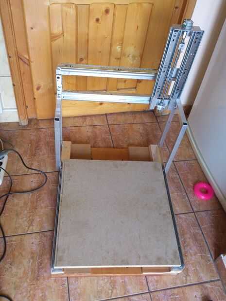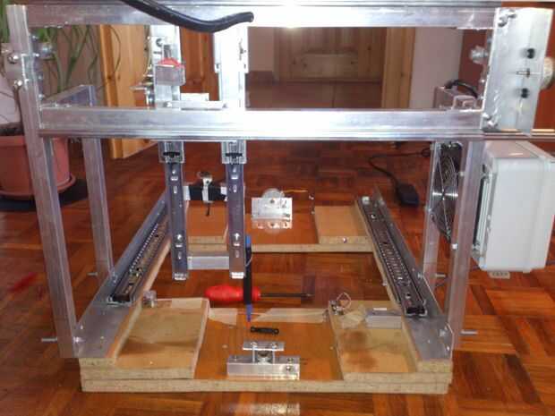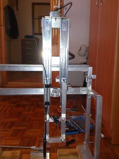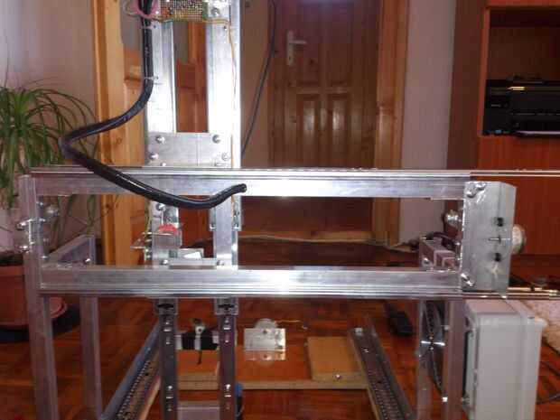 El marco para el eje Z y Y se hace de barras cuadradas de aluminio de 20/20 mm, el marco del eje X se hace de pal y algunos de aluminio.