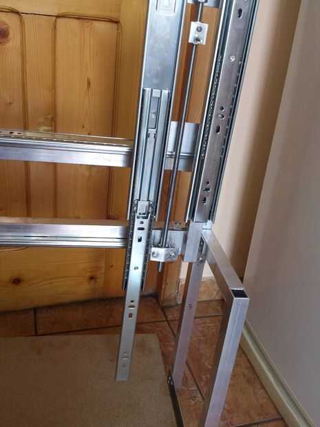 En lugar de rodamientos lineales utiliza deslizadores de cajón de bola, se pueden encontrar en tiendas de muebles, también no la mejor opción pero barato y suficientemente estable.