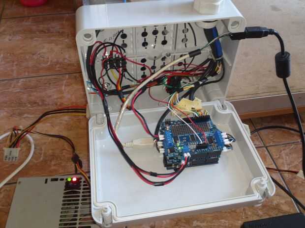 Para la "unidad de control" utiliza una caja grande de Gewise y los cables para los motores y finales de carrera van tubos de aluminio a través