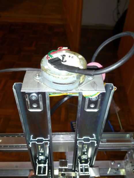 Los motores no son los mejores para esto pero hacen el trabajo. Dos de ellos son PM55-L y uno es L PM35 todos 48 pasos y rotación energía con 12 v de una fuente de alimentación atx, uno pequeño está conectado al eje Y porque no necesita tanto esfuerzo de torsión.