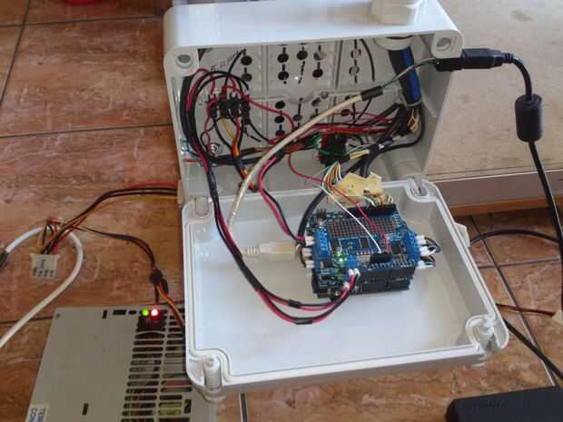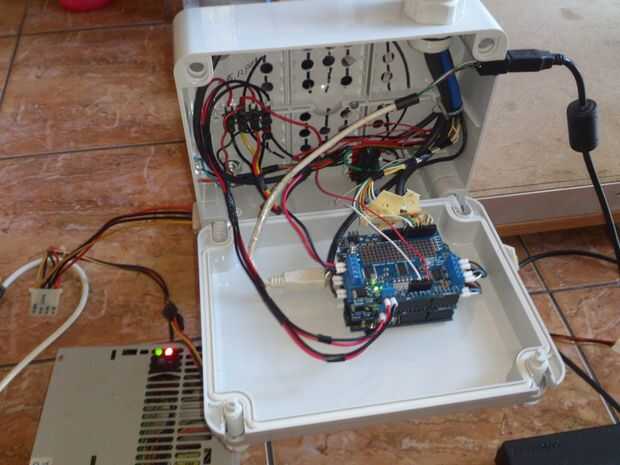 La fuente de alimentación es una fuente de alimentación pc atx, para usarlo deberás poner un interruptor de tierra (cable negro) y PS_ON (cable verde) y también una resistencia ficticia (10k) entre + 5v(red wire) y la tierra, también puede buscar un instructables sobre cómo convertir un atx a una fuente de alimentación regular. Usé 12 v para los conductores del motor y 5 v para arduino y también para un gran fan utilizado para enfriar los conductores.