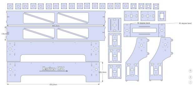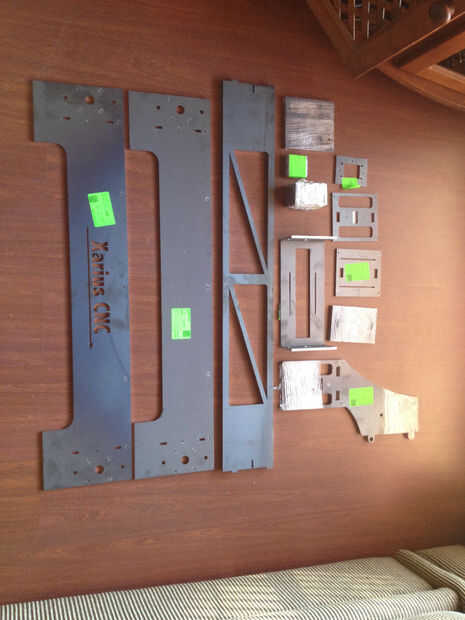 Con el plan terminado en mano fui a una de nuestras empresas de ingeniería locales y consiguió una copia de este plan de corte de acero de 5 mm. Esto era básicamente para la base (eje x), y fue cortada la parte superior de aluminio de 4 mm (eje de y y z para ahorrar peso en las partes móviles)
