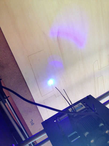 Así que hice mi primer "corte" con el láser de www.banggood.com, y me decepcionó un poco, en retrospectiva debo han realmente comprar un laser más fuerte, pero en el momento sólo tenían 500mW disponibles, pero fue suficiente cortar la etiqueta engomada del vinilo, así que pude decorar mi planos y pude grabar los planos de mi avión de balsa en mi madera y sólo con la mano.