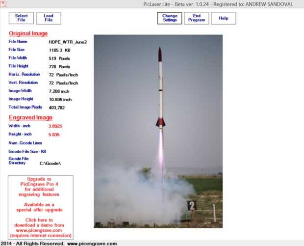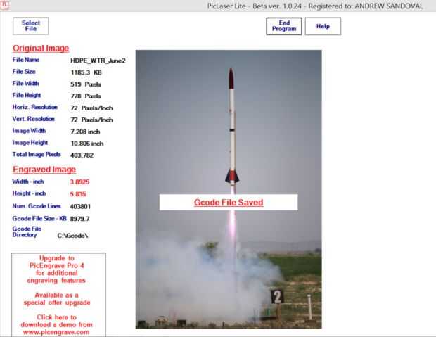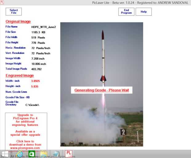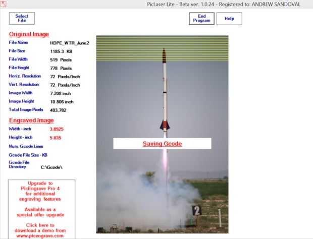 PicLaser Lite es un programa barato de http://www.picengrave.com. Permite cargar un archivo de mapa de bits y de él generar código de G para el 2 de Shapeoko con valores z para producir una imagen de escala de grises.