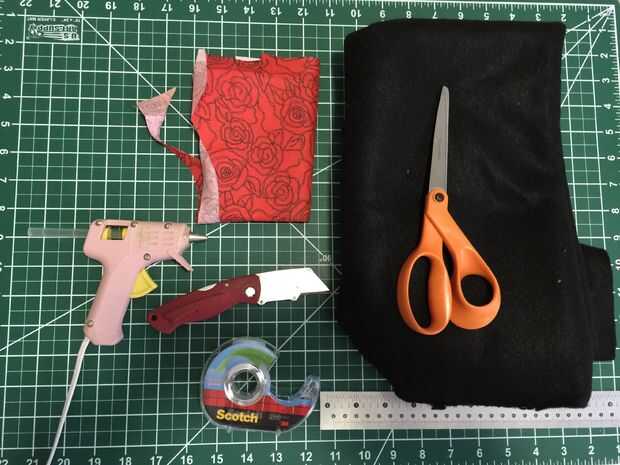 - Utilidad o Xacto cuchillo para cortar la cartulina y tela