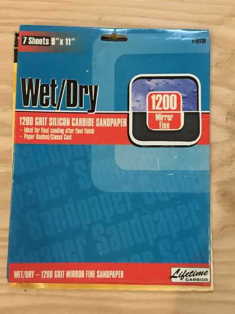 - papel de lija de grano 120 o 200 para pulir las cajas de la joyería. Más grueso el grano, la más oscuro que la mancha va a ser como la mancha penetra en la madera más profundo.