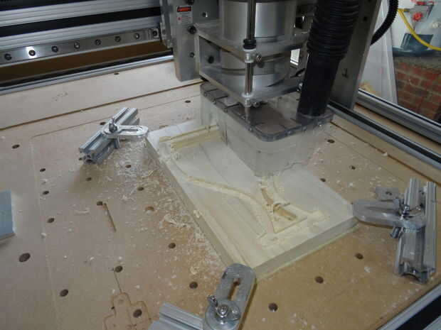 Ahora que ya tenemos los archivos de código g, todo lo que necesitamos hacer es cargar la madera en la máquina CNC, el código de g de la carga en el Software de controlador de CNC para la cual utilizo Mach3 y dejar rip. Parece fácil pero hay un montón de alineación y configuración que necesita ir a través. Lo más importante es asegurarse de que la pieza de trabajo coincide con la medida de la herramienta de corte, para que no terminan de aire de corte, o peor, empezar a cortar sus hold downs o superficie (no es que cada vez que me pasa a mí!) de trabajo.