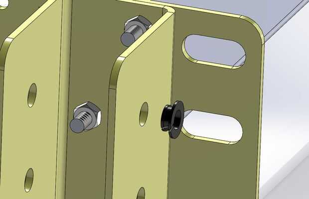 Otra placa de diamante del perno en el extremo de la abrazadera de la esquina (observe la alineación de la abertura en forma de L.)