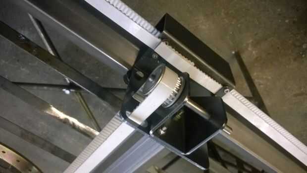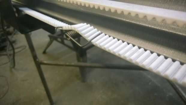Mover el carro Y a un extremo de la máquina por lo que los carros Y duros contra la gallina de t de los soportes de esquina la siguiente pieza de correa dentada a través al otro lado del hilo de rosca. Usted tendrá que ajustar el cinturón pasando t hrough cada mordaza individualmente que el puente es cuadrada y la correa está tensada.